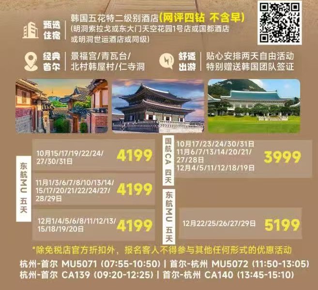首爾-杭州MU5072(12:20韓國時間-13:45北京時間)/CA140(13:35韓國時間-14:55北京時間